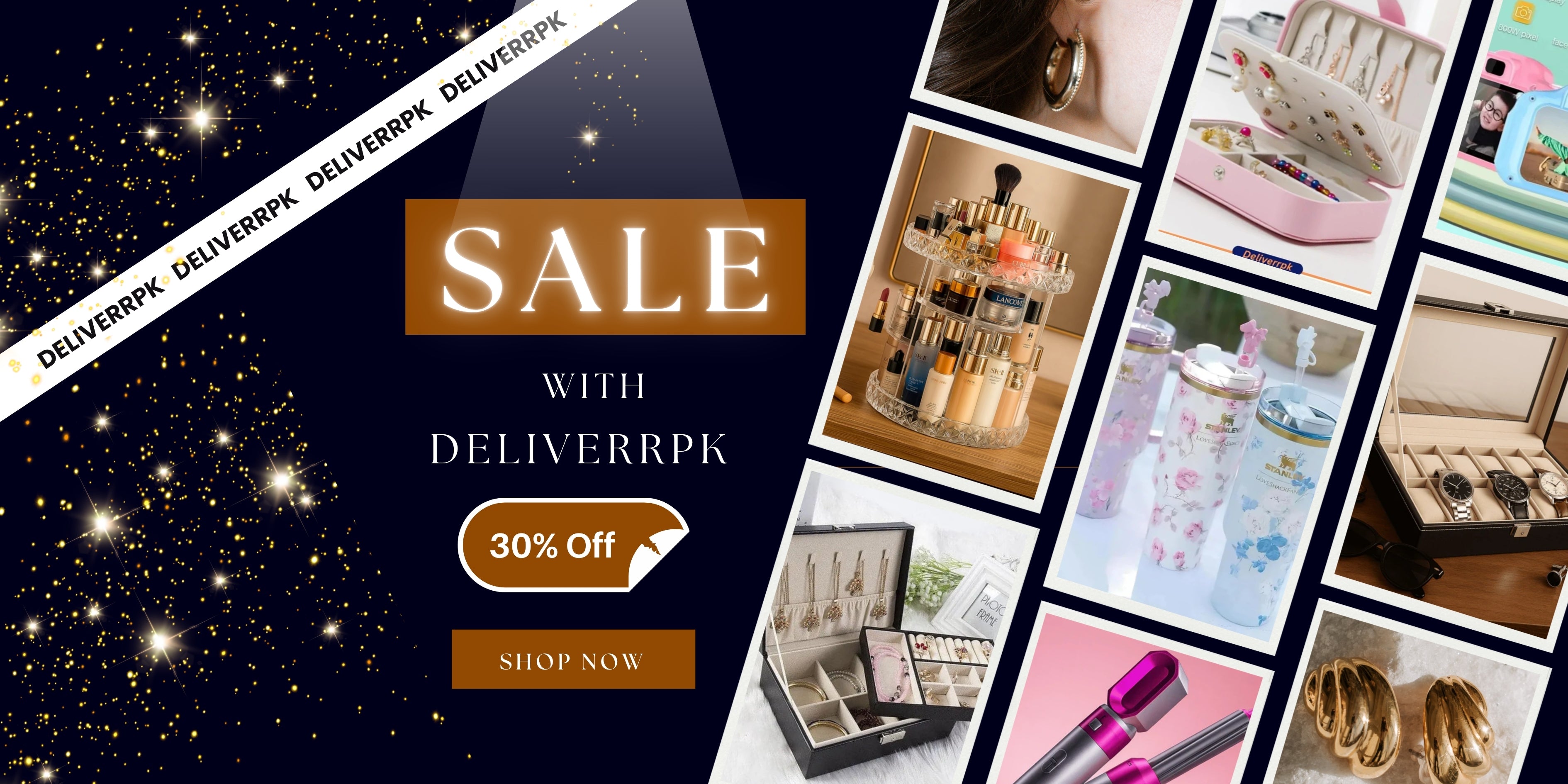 Deliverrpk is the best online store in Pakistan for premium Makeup boxes, Jewellery boxes, Watch Box, tumbler bottles and beauty products designed to add elegance, organization, and convenience to your daily life. We bring you high-quality, stylish, and affordable storage and beauty solutions with fast nationwide delivery.